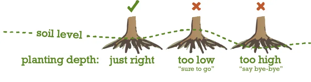 So, you’ve done your research and you’ve found a strong healthy tree (or trees!) to add to your landscape, amazing! Before any digging is done, always call 811 to make sure there are no underground hazards, such as pipes or fiber-optic cables, that you could possibly run into. (This process takes 24-48 hours to have someone come check out your planting site and is free.) After you receive the all clear, it’s time to plant!
