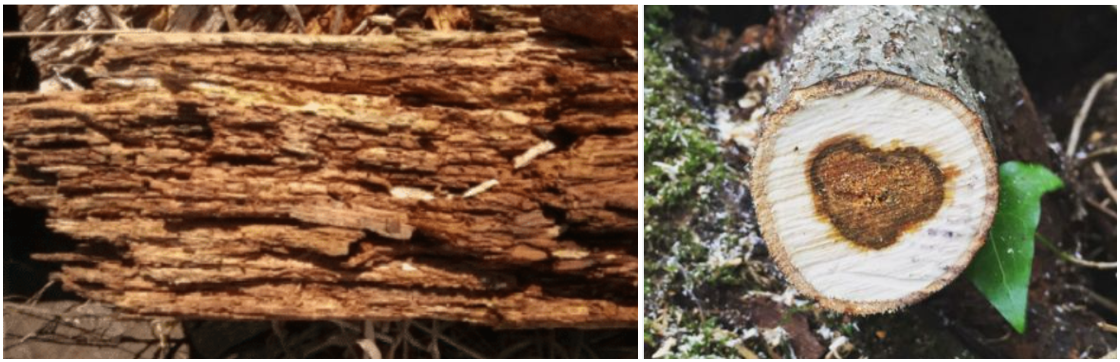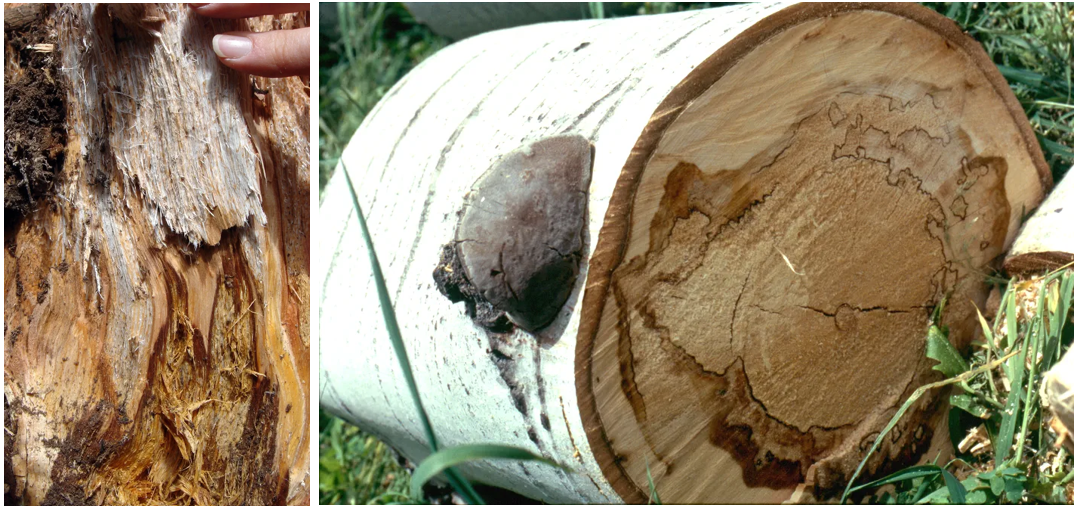 caused by the decomposition, and the photo on the right by ResearchGate shows a decayed cross-section of a trunk*