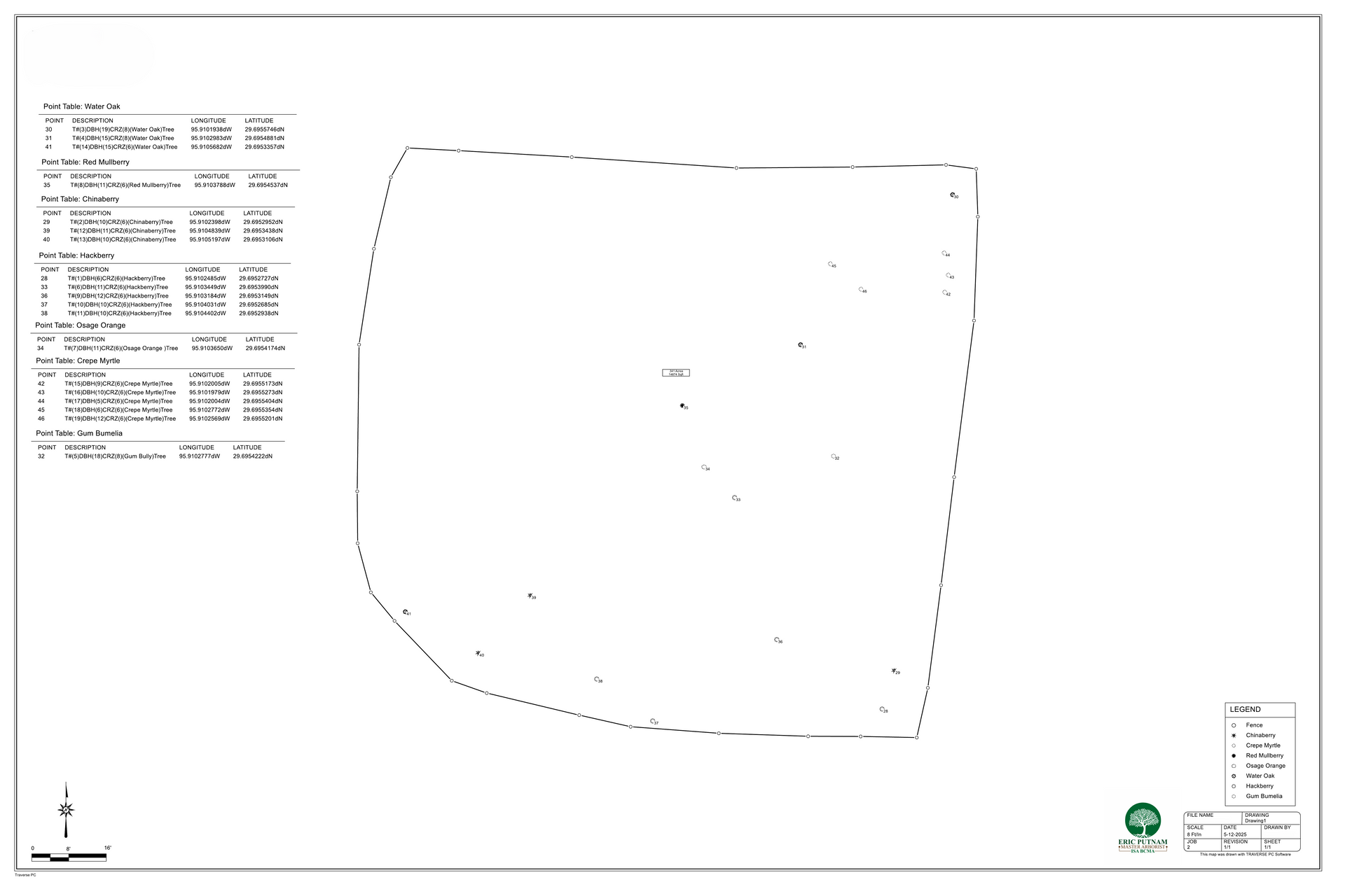 Our tree cataloging services create a comprehensive inventory of the trees on your property. Each tree is individually recorded with key data such as: